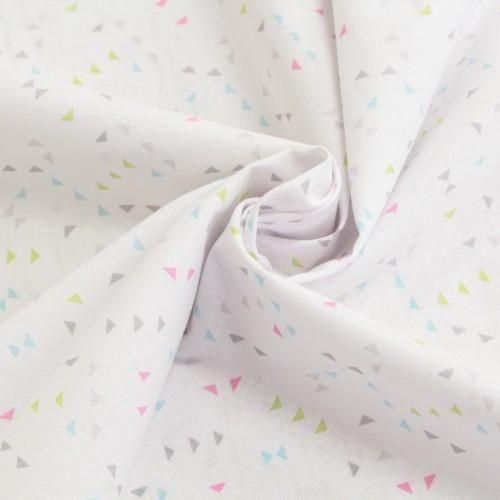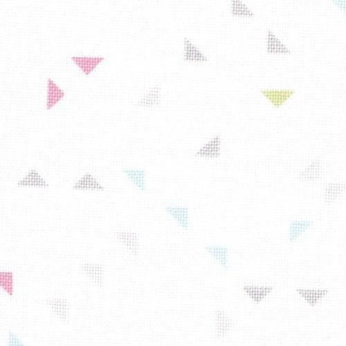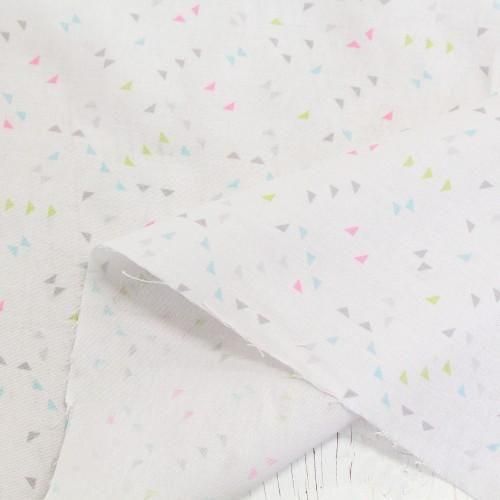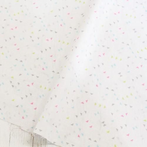 チェリーサデザイナーがお届けする白地にカラフルなトライアングルがたっぷり詰まった可愛らしい一枚。ついつい可愛い生地を集めてしまう女の子の布の夢を叶えるお手伝いができてとっても幸せ!