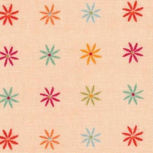 オレンジをベースに整然とカラフルなお花が並んだ可愛らしい一枚です。