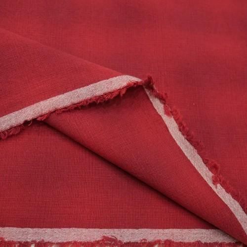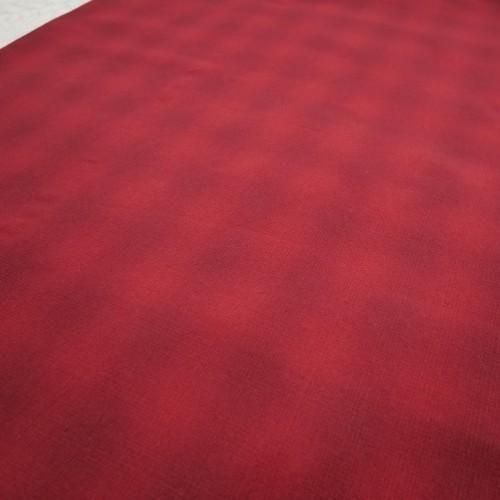 タテヨコともに同色系の濃度差の少ない配色でチェックを表現しています。真っ赤な生地の中に薄っすらとラインが入っているチェックに仕上がっています。