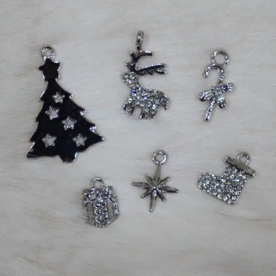 錫合金のラインスト―ン/ガラスでの仕上がりです。キラキラととっても綺麗なチャームはこの冬ツリーに飾りたい!終わったら、イヤリングなどにも♪アイテムは6種類です。